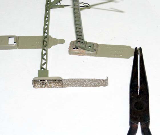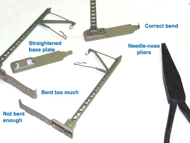 1. With a needle-nose pliers straighten the base plate of the catenarry.