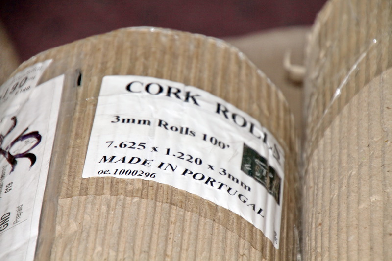 Applying the glue for the cork was the messiest part of the job. You have to wait for the glue to set before installing the cork. Once the cork is installed you have to roll it. One of the earlier photos shows the small roller that was used.