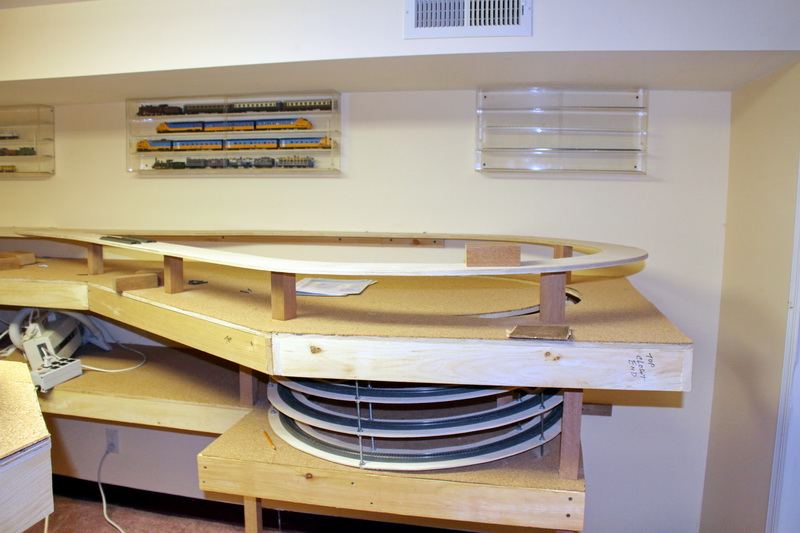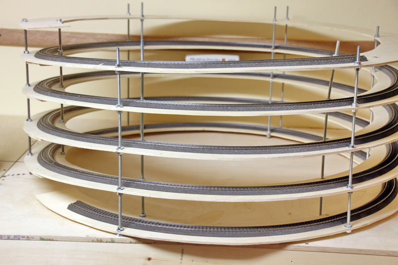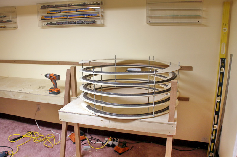 Since the layout is in a small space and has three levels the connections from the lower level to the main level were initially to be connected with two helices. I changed that as you will see in later photos.