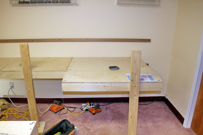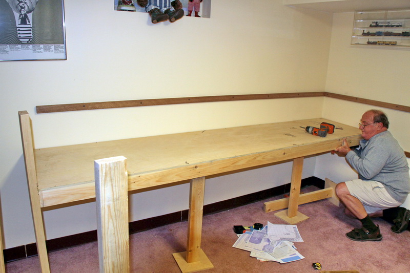 The new layout is only 12 feet by 14 feet but has enough space for an exciting layout. The new layout, when completed will be three tiered. Below are some photos of the construction of the layout. It was assembled using pre-built modules. The modules were designed by Zeke Sampson and built by Barry Kreigsman.