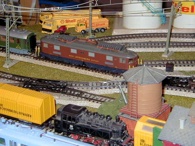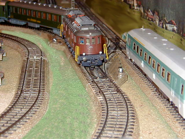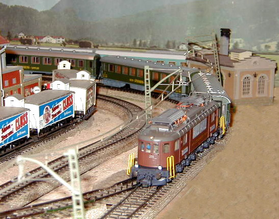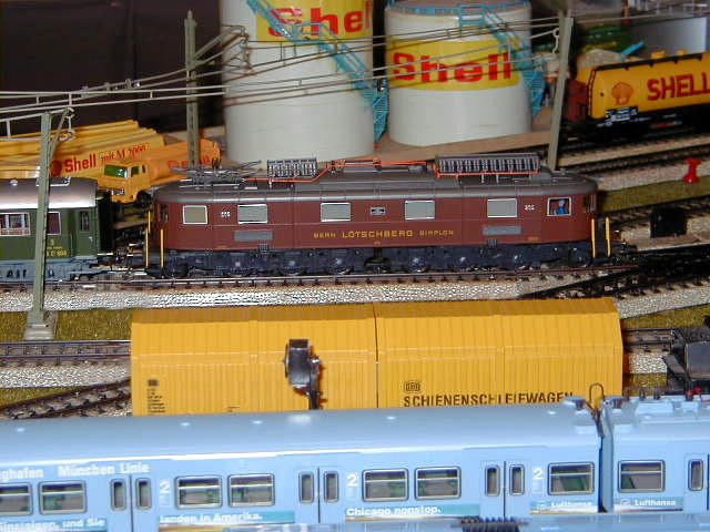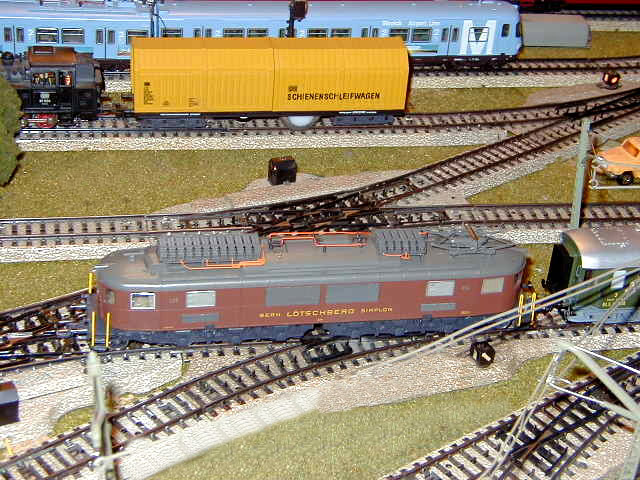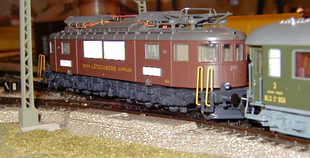 The Roco Museum Edition of the Bern Lötschberg Simplon (BLS) Ae 6/8 #205 lok on the mainline.