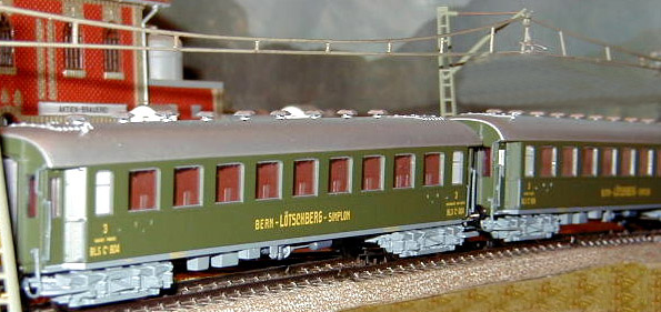 Roco 3rd class Bern Lötschberg Simplon (BLS) coaches.