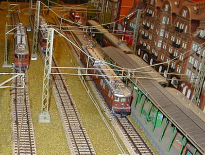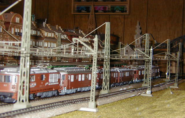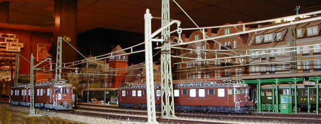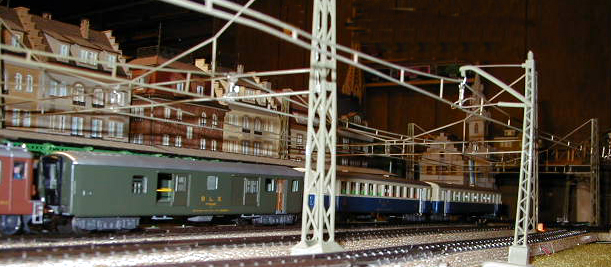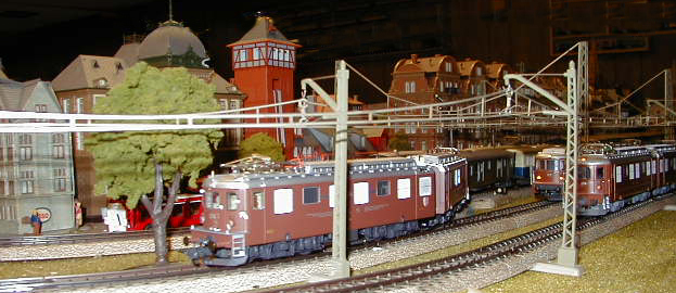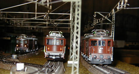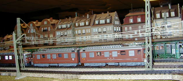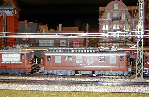 The BLS engines sit idling on the mainline and the bahnhof sidings.