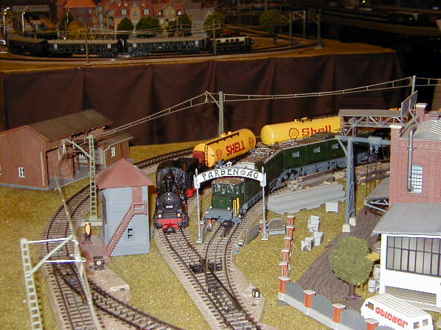 Passing the Farben factory. The city section can be seen in the back ground with an EP 3/6 hauling a passenger consist.
