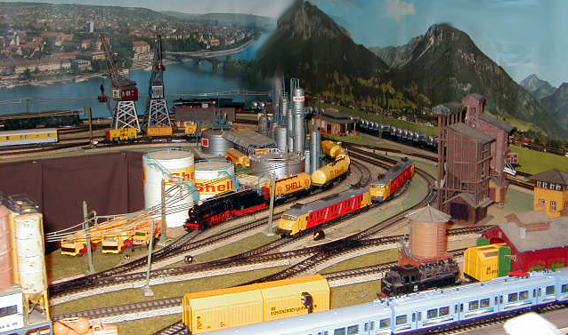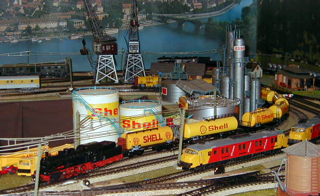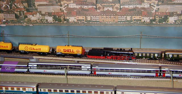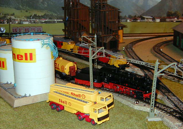 The consist of ten Shell tank cars is easily pulled by the BR 55.