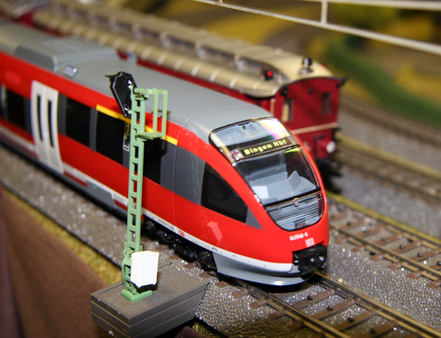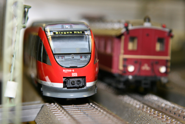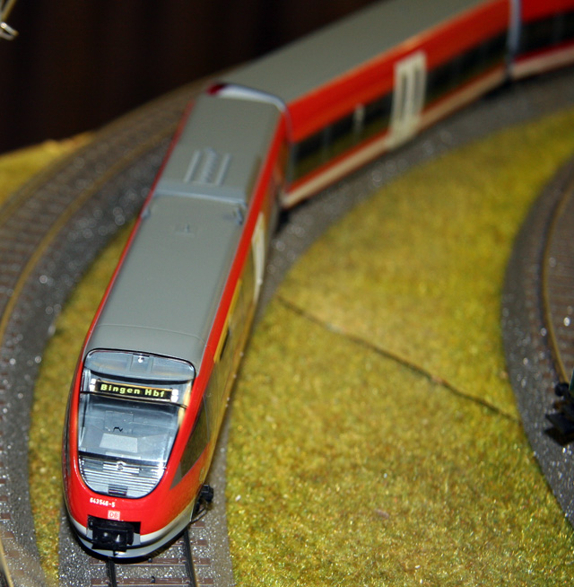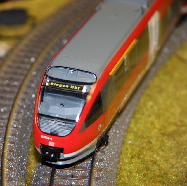 A BR 643 train driver on the route to Bingen (Rhein) Hbf.