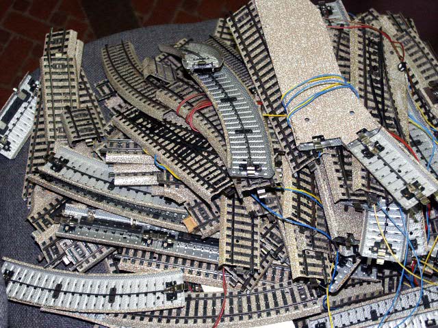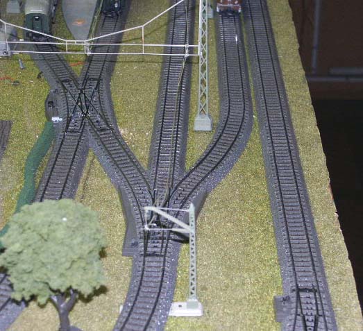 These pictures show how I converted from M track to C track and converted catenary posts for use with C track. Since my layout is digital and C track provides a more reliable digital signal, I wanted to convert to C track for my main routes and retain M track for lesser used routes and for my yards.