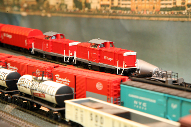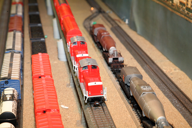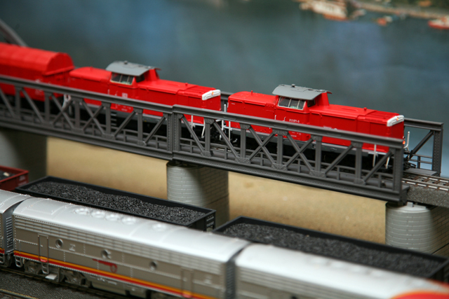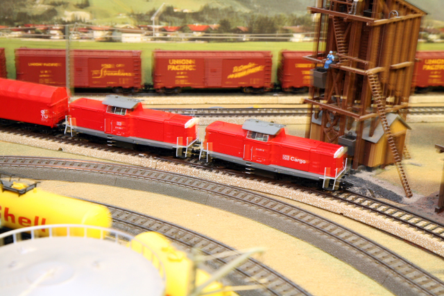 DB Cargo Class 212 and Class 213 loks on the trestle. Click on picture to return to description.