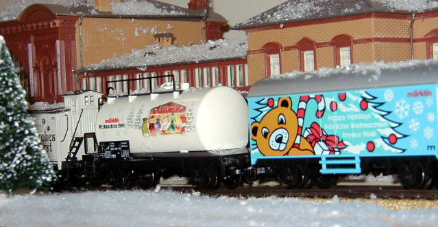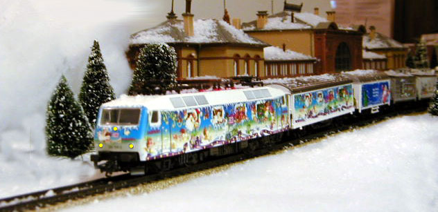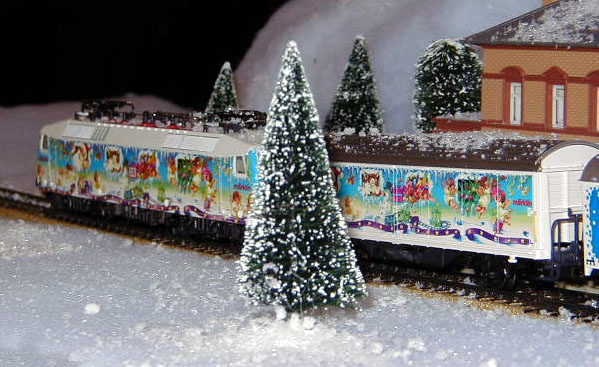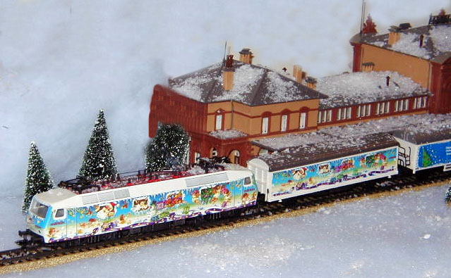 The BR 120 Christmas Engine (Märklin 37531) lok with its Christmas car consist - Merry Christmas!