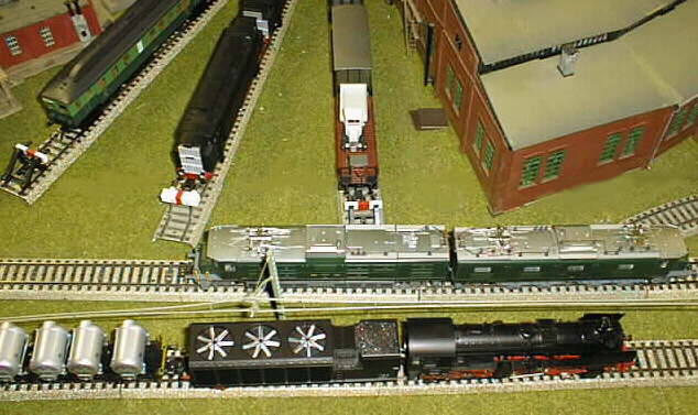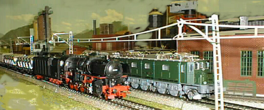 The DB 52 condenser engine passes the SBB Ae 8/14 engine.