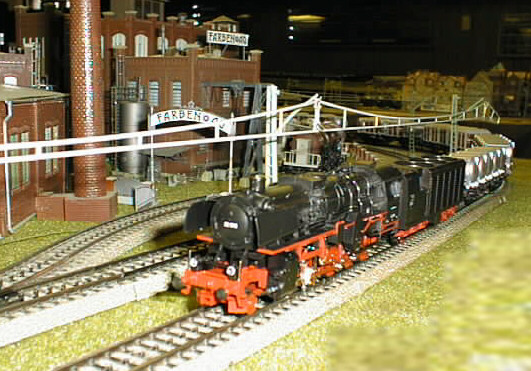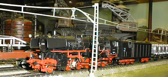 The DB 52 condenser engine hauling a consist of Von Haus/Zu Haus container cars.