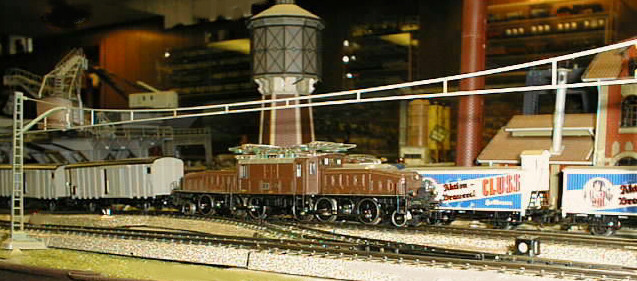 An SBB crocodile on the main line passing the Aktien Brewery - Wulle Stuttgart.