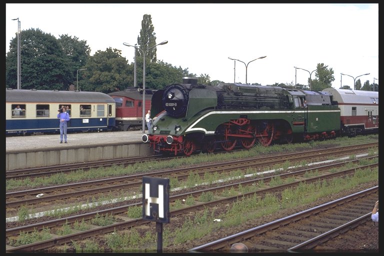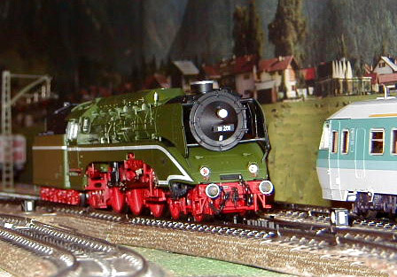 The DB-AG 18 201 steam lok passing the Pendolino.