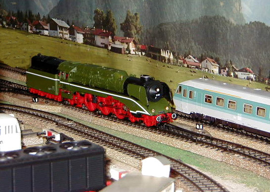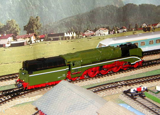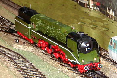 The DB-AG 18 201 steam lok on the mainline.