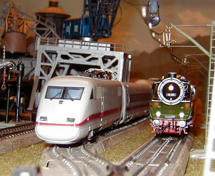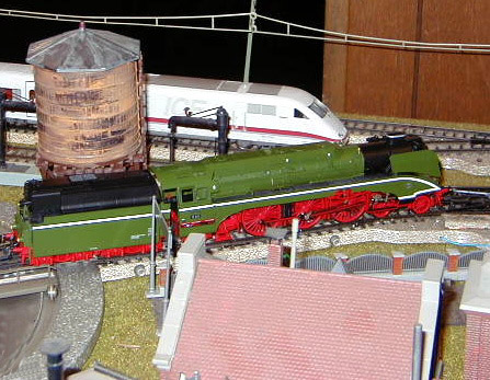 The DB-AG 18 201 steam lok passing an ICE train.
