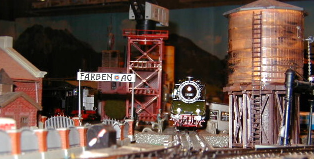 The DB-AG 18 201 steam lok passing the industrial yard.