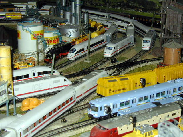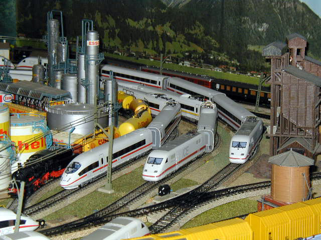 Six ICE trains in the industrial section of the layout.
