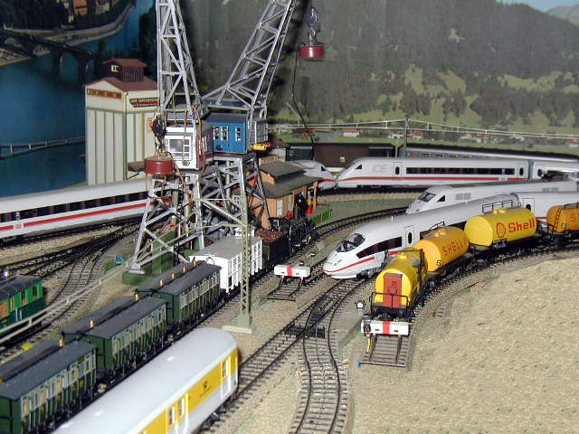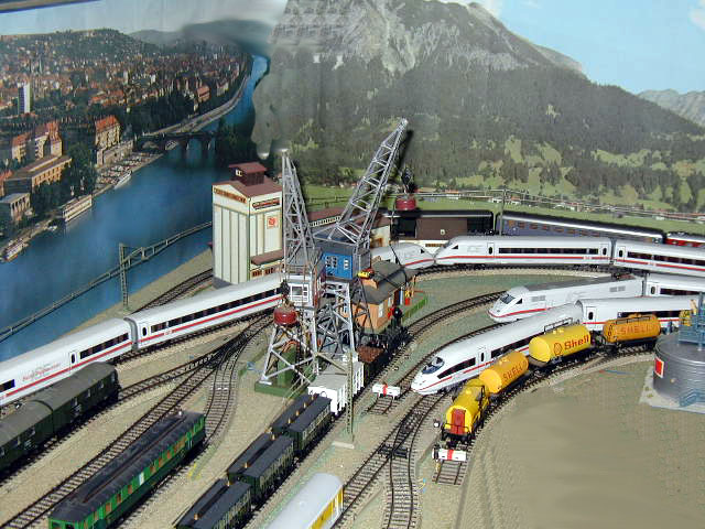 Two Märklin cranes are seen with the ICE trains.