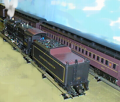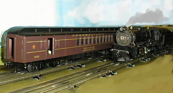 The Pennsy K4 Steam Engine with 70 foot Madison passenger cars on the next track.
