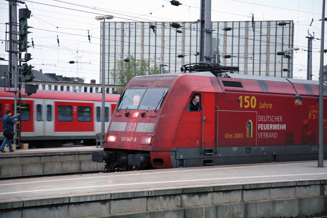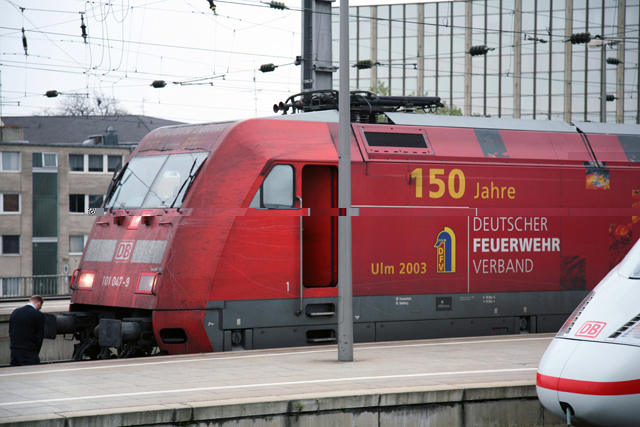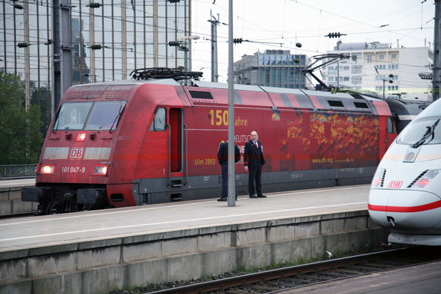 A Br 101 150 Year Anniversary lok. The driver appears to be inspecting the tracks in front of the lok - or is he? (There are no restrooms in the BR 101.)