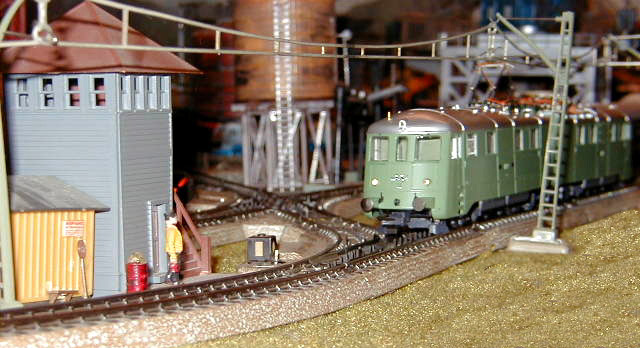 The Ae 8/14 Landi-Lok waits with other SBB CFF trains.