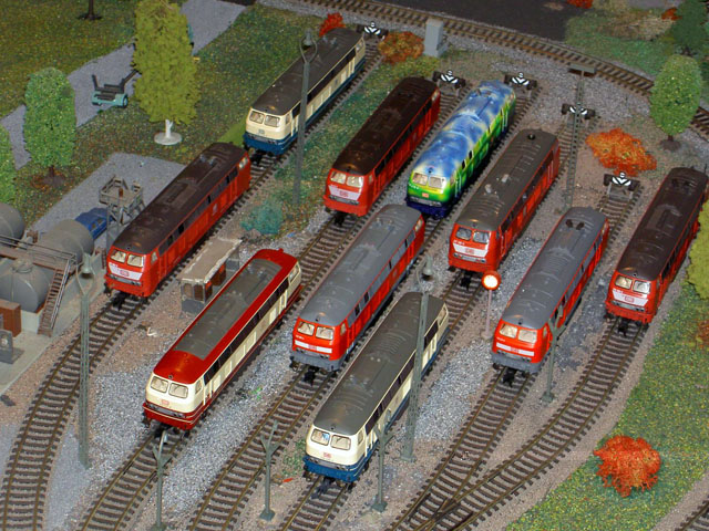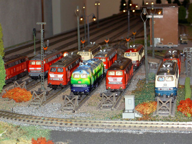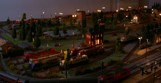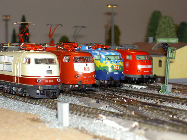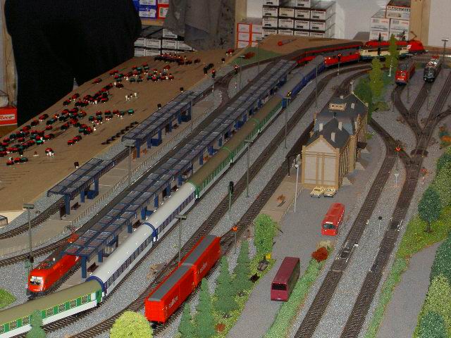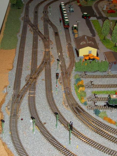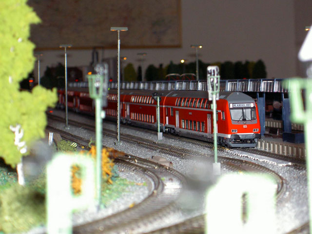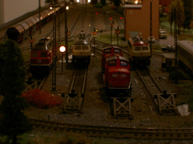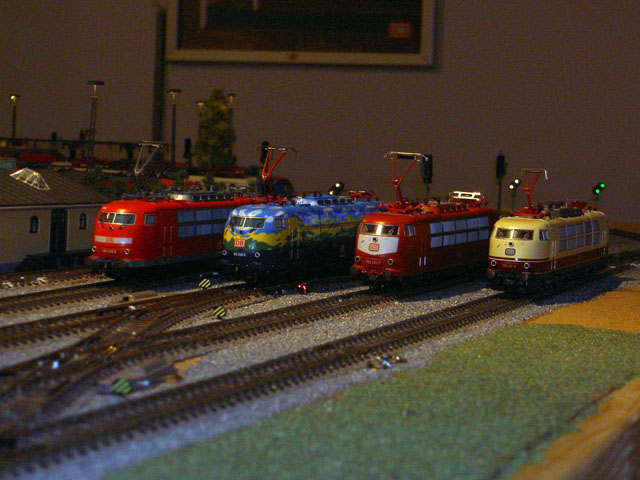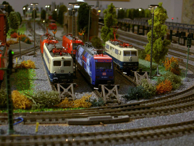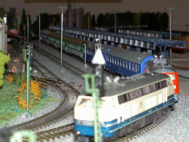 Pictures of a DB train driver, Mark Keßler's, Epoch IV and Epoch V layout. Mark is a Märklin collector of Epoch IV and V and, of course, the loks he drives. Mark carries his job home with him to his layout. He creates a timetable for a consist which he decides to create. He begins by finding an available lok on one of his sidings, brings it to the track where the consist is and begins a timed route. As the consist follows its predetermined route Mark pays particular attention to the correct operation of signals and and makes sure that signal aspects are correct and true to the DB rules. That attention to detail comes in part from his father who worked in a switch tower until he retired. Now he works with Mark as on the two "specialists" who built and drive consists on this layout.