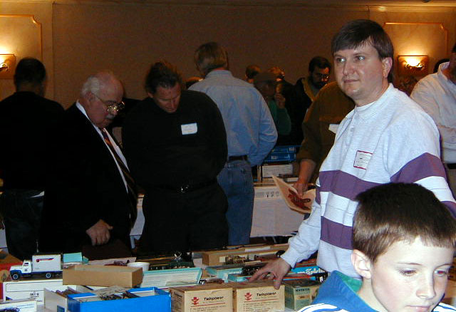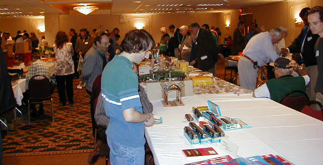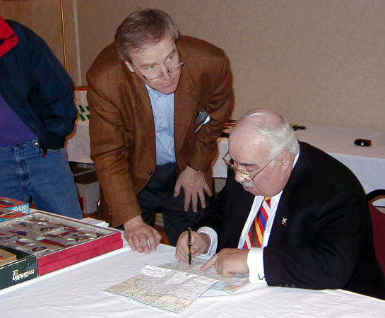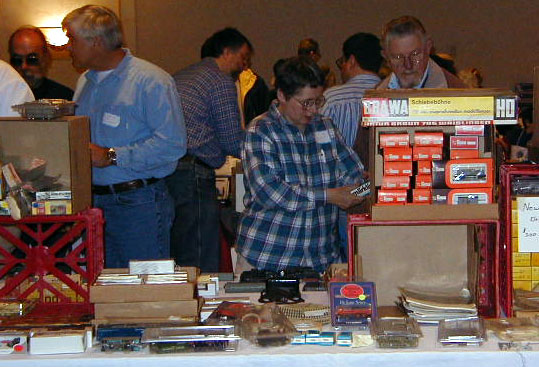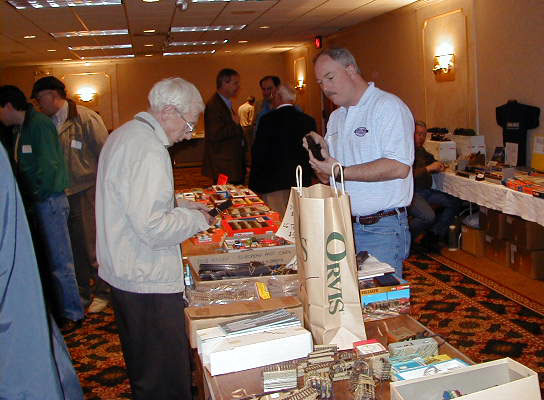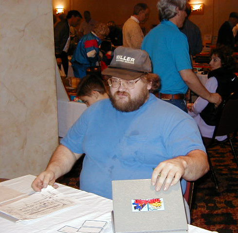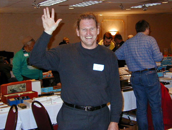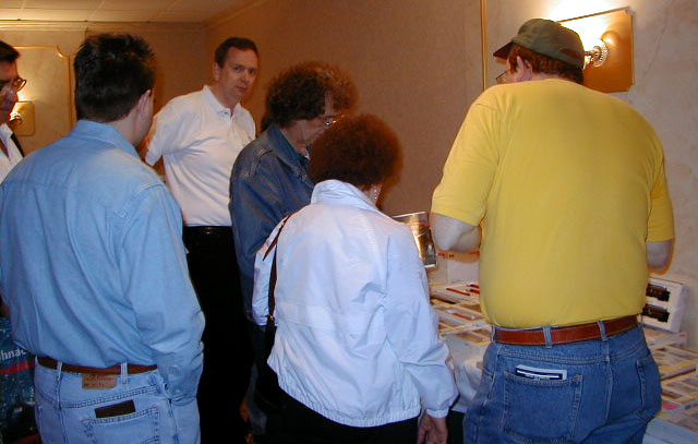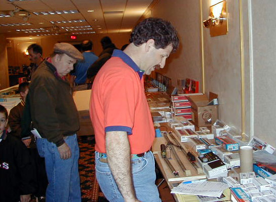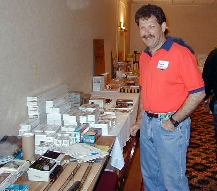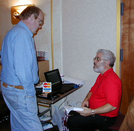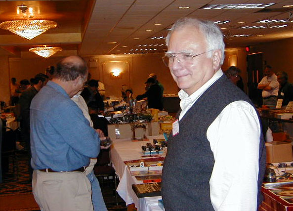 Michael Bonczewski at his table while Bob Monahan talks to Wolfgang Bauer in the background.