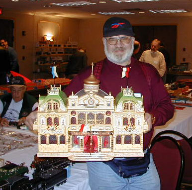 Ed with his brother, Will, explaining a Märklin fine point to Mr. & Mrs. Tom Crocus. Note Will's handy Koll's in his back pocket.