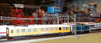 ictures of the Märklin (49960) Meßwagen. This measurement car is digitally controlled and allows prototypical measurement of speeds, lapsed times and running times. It is seen here being pushed by a DB Class 212 diesel but it is used with all engines to determine there prototypical speeds.P
