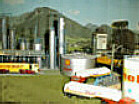 Several views of the Shell refinery and one picture of the Esso refinery. A DB Class 212 hydraulic diesel engine (Märklin 3147) is ready to pull a consist of Shell tank cars, some two axle and others four axle. I like to put consists together which have cars that match. The buildings are primarily Vollmer models with some Kibri.