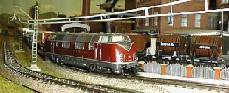 ictures of the V188 double diesel (Märklin 37282) pulling a consist of passenger cars. There are several pictures of the V188 lok passing through the farm section of my layout. This is a great engine with diesel engine sounds and a horn sound.