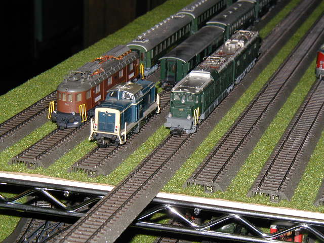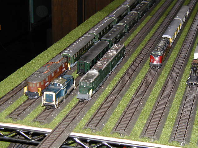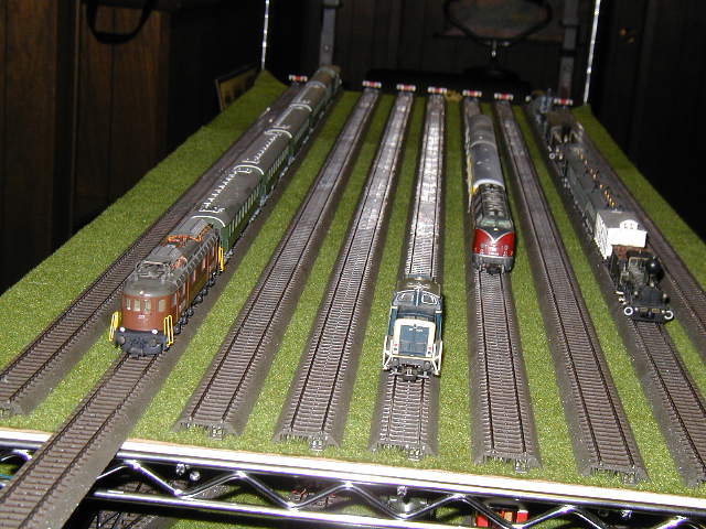 The rack, as I call it, allows me to move loks and consists on and off the layout with relative ease. In fact, it is fun moving a consist and its lok onto the rack then changing loks for a new consist. No need to power the rack since it gets its power when I connect to the mainline.
