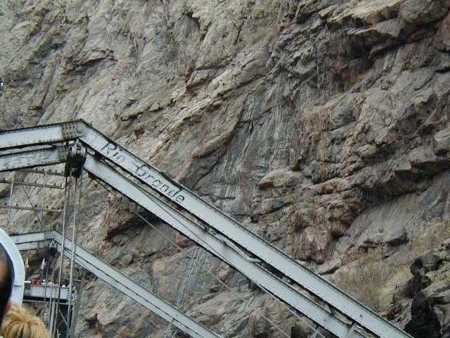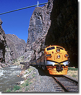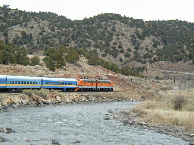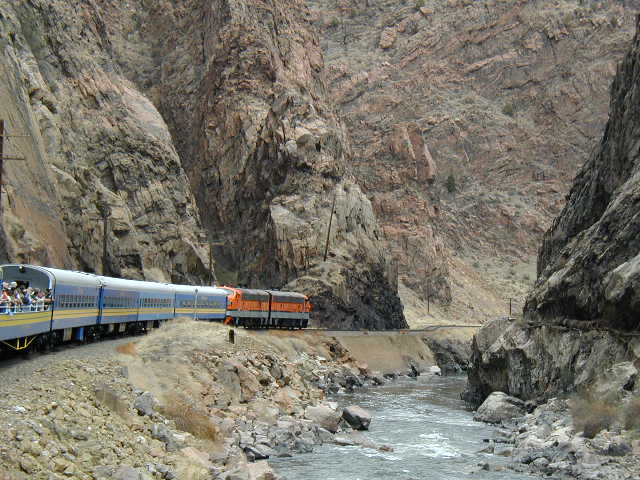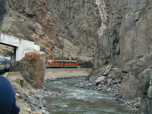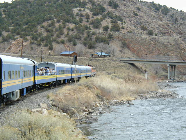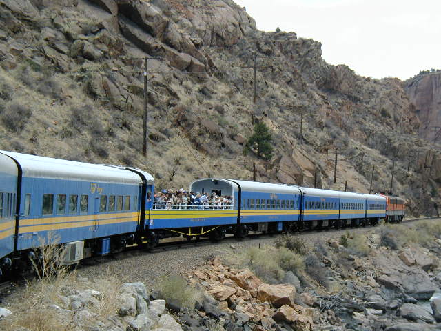 The Royal Gorge Railroad train has closed and open cars. Try to ride in the open cars if you want to take pictures. Click on picture to return to description.