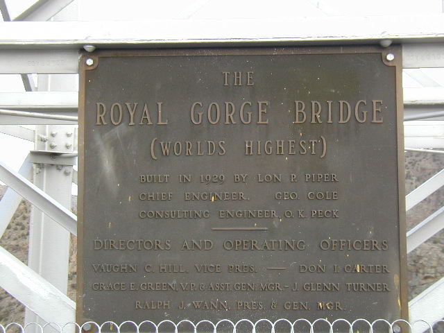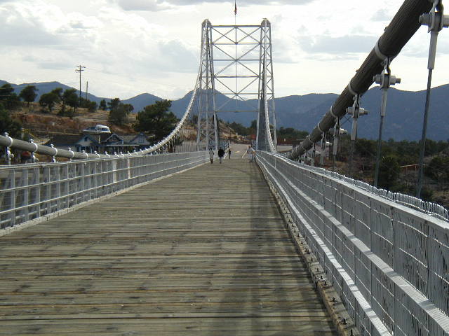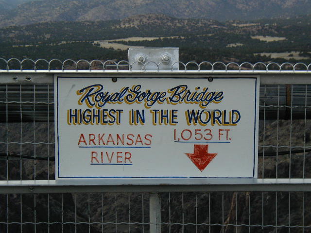 The Royal Gorge Bridge, a 1,000 ft high suspension bridge, the highest in the world. Click on picture to return to description.