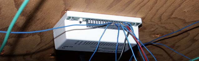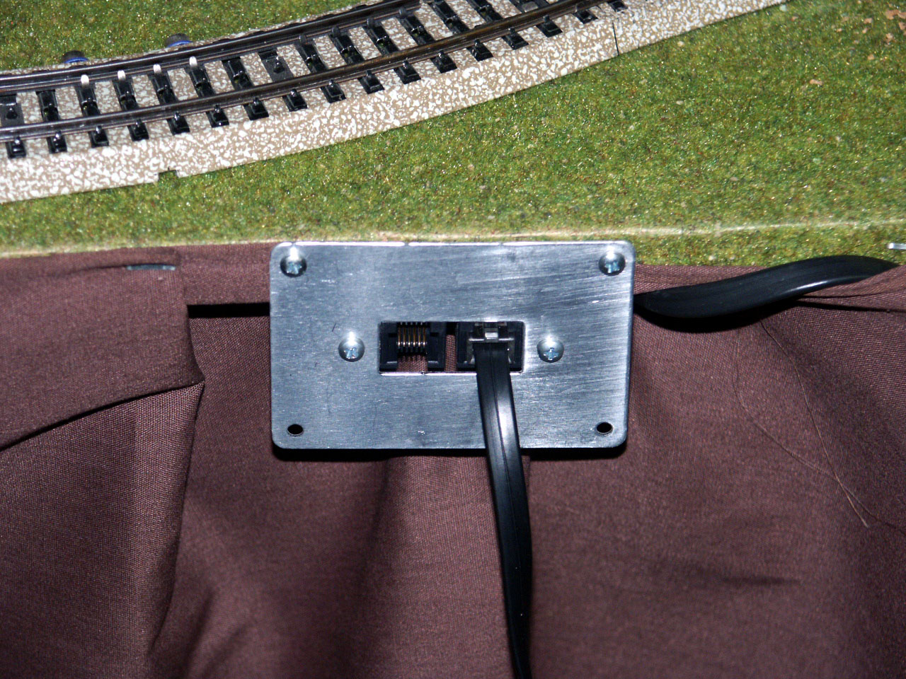 The LocoNet port. Easy to install and convenient to use. These ports come from Loy's Toy's and are inexpensive. They have two ports in the front for devices and two ports in the back for daisy chaining.