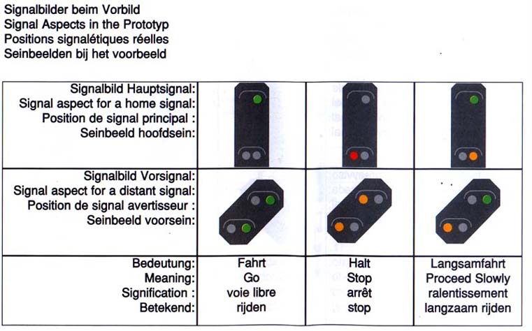 If you follow this steps you should not have any problems programming a signal. First, understand that a home signal with no distant signal capability (76391 with two signal aspects - a red and green light) will need only one pair of (red and green) keyboard buttons. If, as in the case of 76393 with three signal aspects - red, green and yellow lights, there is distant signal capability then you would need two pairs of buttons although the you use only the green button in the second pair. I suggest, as does Märklin, that these button pairs be adjacent to each other. For signal 76394 you need only two button pairs. This signal has two white switching LEDs. As you get to the more complicated entry 76395 signal (six signal aspects) you must use four pairs of buttons with the 2nd and 4th pairs using only the green button. 76397 (seven aspects) signals requires four pairs of buttons with the 2nd pair using only the green button. Keeping the button pairs adjacent to each other will make setting signals easier.