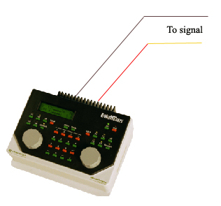 11. Turn off the control unit. Disconnect the signal from the white plastic base. NOTE: YOU CAN NOT TEST THE SIGNAL ADDRESS WITH THE WHITE BASE CONNECTED. IF YOU DO, THE SIGNAL REVERTS TO THE DEMO MODE AS LONG AS THE WHITE BASE IS CONNECTED.