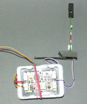 2. Open the carton but DO NOT REMOVE THE SIGNAL FROM THE CARTON AND UNDER NO CIRCUMSTANCES REMOVE THE SIGNAL FROM THE WHITE PLASTIC TRAY THAT HOLDS THE SIGNAL AND DECODER - YOU MUST HAVE THE DECODER CONNECTED TO THIS TRAY TO PROGRAM IT. Extend from the carton only the YELLOW and BROWN wires and connect the YELLOW wire to the clip on the Control Unit (NOT THE YELLOW CLIP) and the BROWN wire to the BROWN clip on the Control Unit.