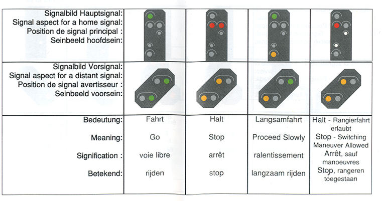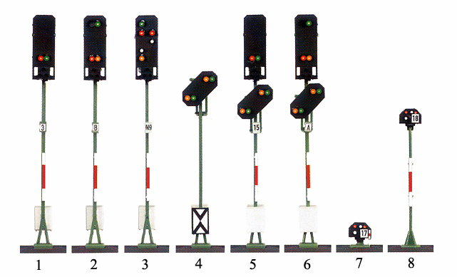 These signals include home signals with and without distant signals, which control blocks, as well as entry and exit home signals for stations with or without distant signal control.