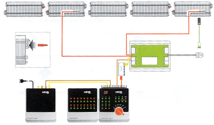 The white tray should be saved. It can be used again to re-program the signal. Marout Yasuo Sluijter-Borms uses a modified wire with 2 crocodile clamps. The crocodile beaks grasp the special contact surfaces on the signal PCB sides from below the plastic PCB-backplane.Below is a diagram of the wiring for a 76391 signal using track voltage for the signal.