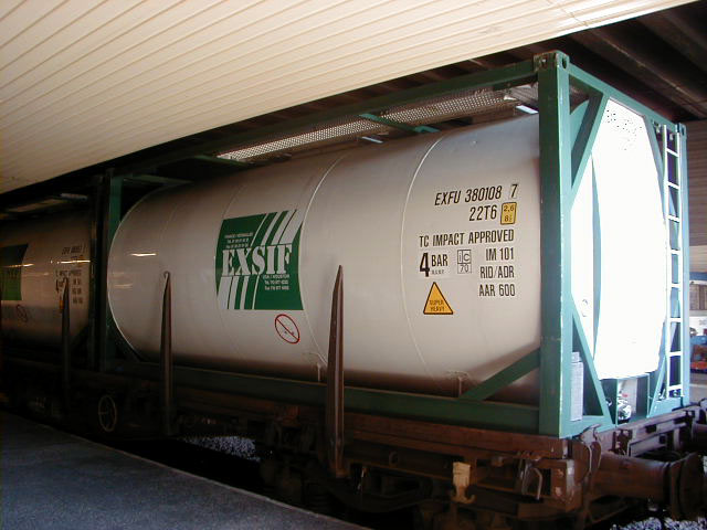 A freight consist passed through the station in Rouen. This was one of the tank cars.