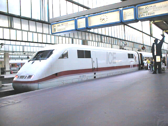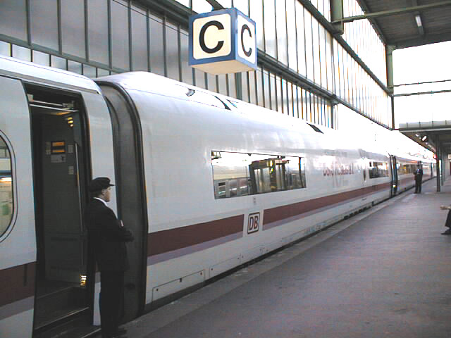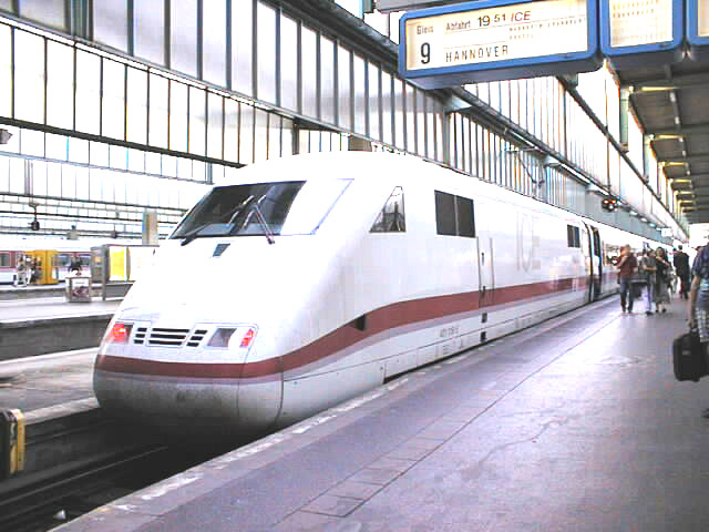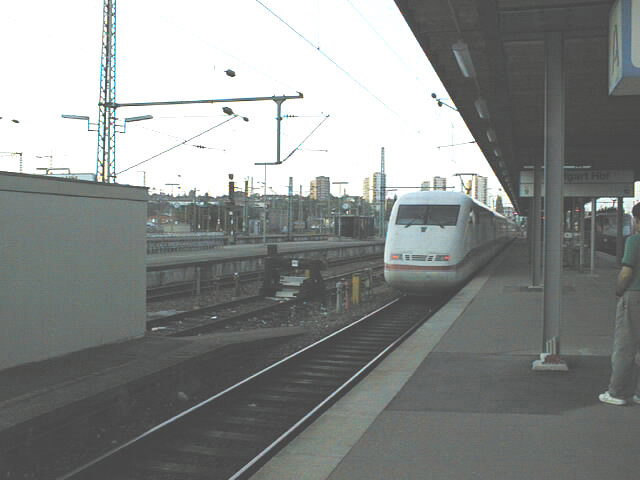 The ICE train in the Stuttgart train yard on its way to Hannover.