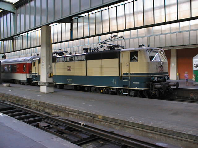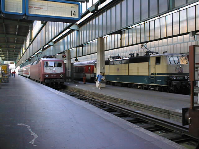 A DB 120 and 151 at the Stuttgart Hauptbahnhof.