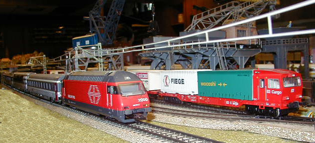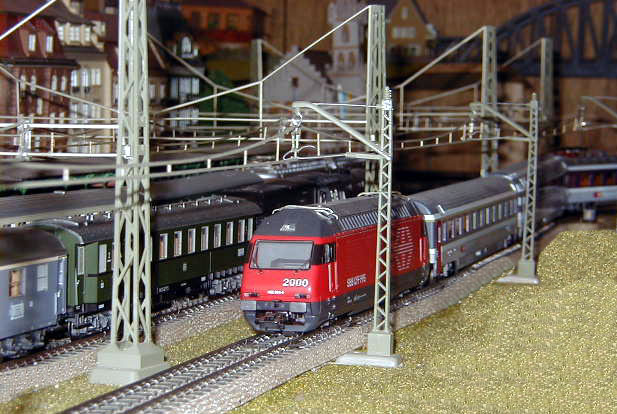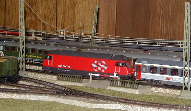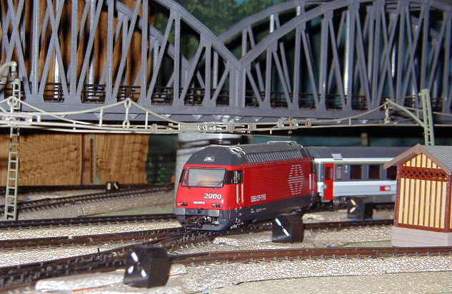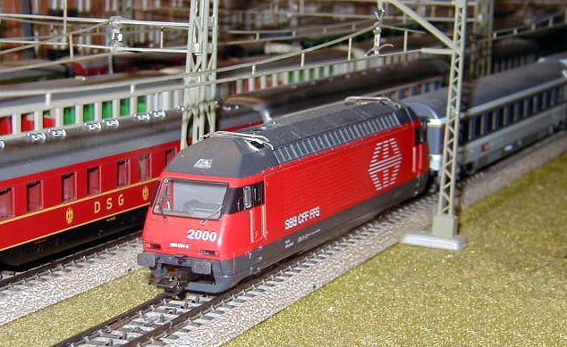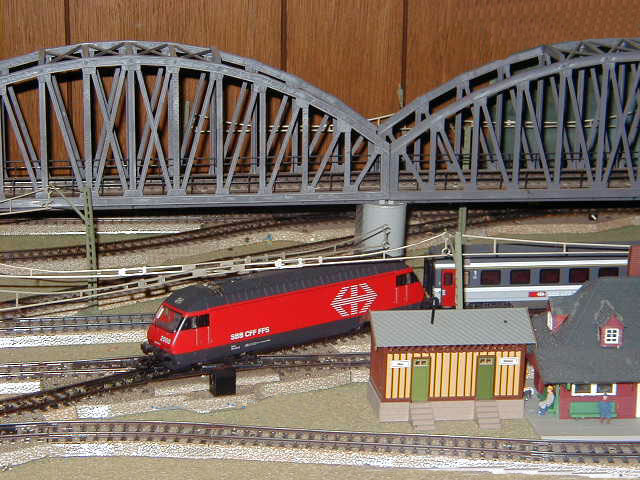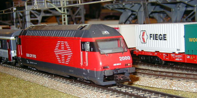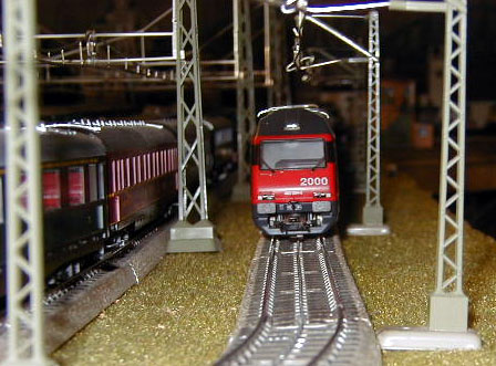 The SBB CFF FFS 2000 Class 460 lok (Märklin 3760) entering the main line.