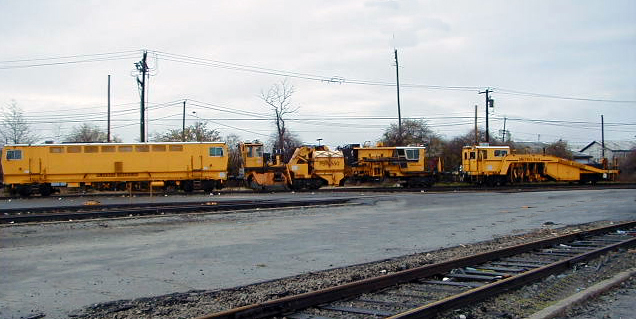 LIRR maintenance of the way (M/W) cars in the Garden City Yard.