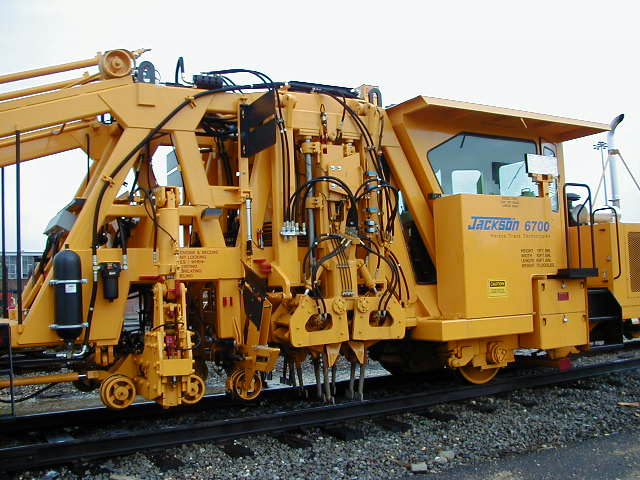 The Jackson 6700 tamping machine with switch tamping capability and precise lining and reference system.