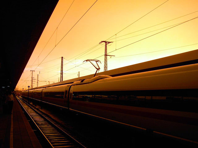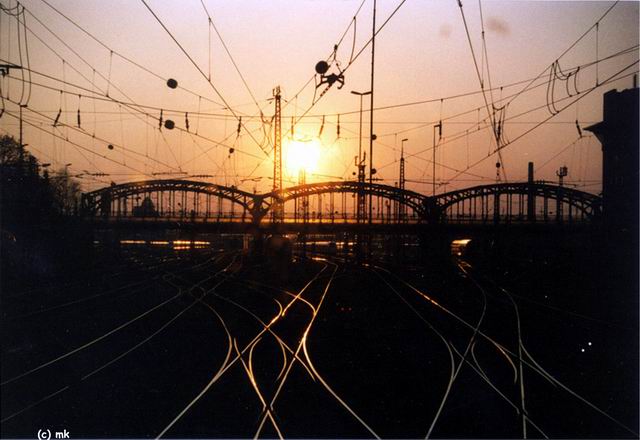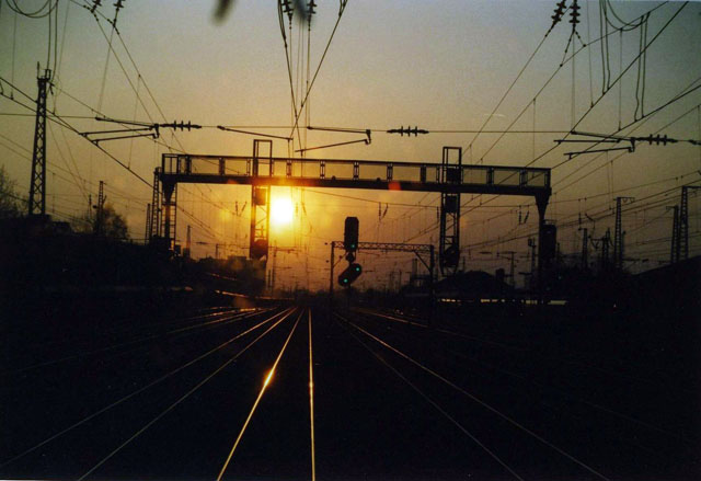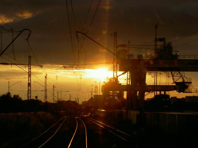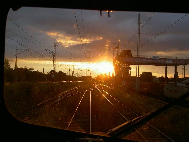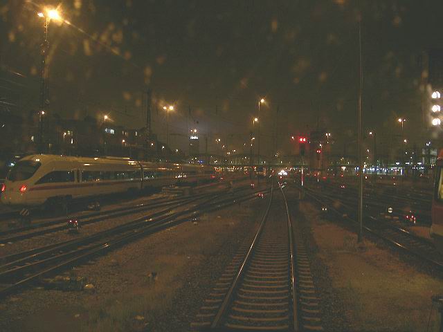Sunset at the Nürnberg Hbf, a view out of an ICE BR 401.