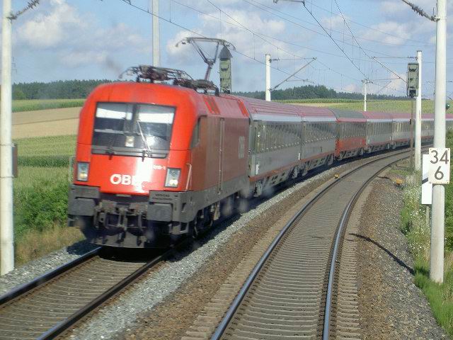 Passing an Austrian (ÖBB) 1016 in Passau.