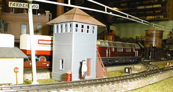The V220 engine passes the tower with a signal from the towerman to proceed.